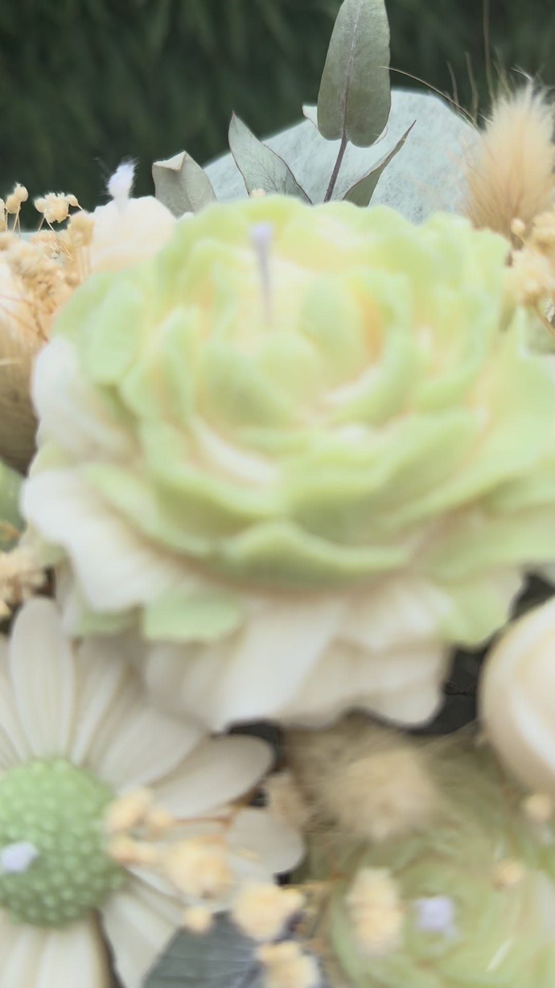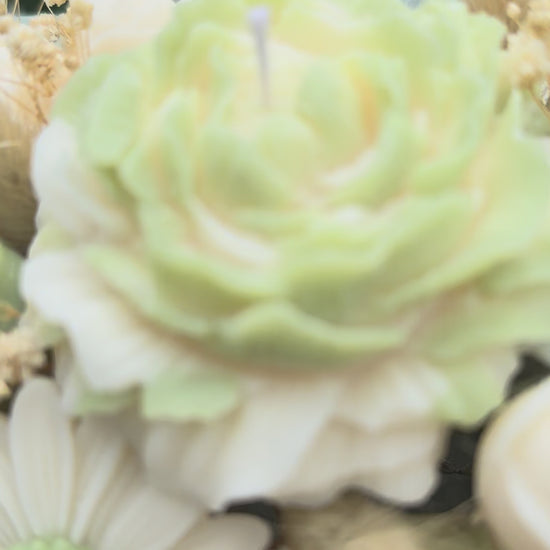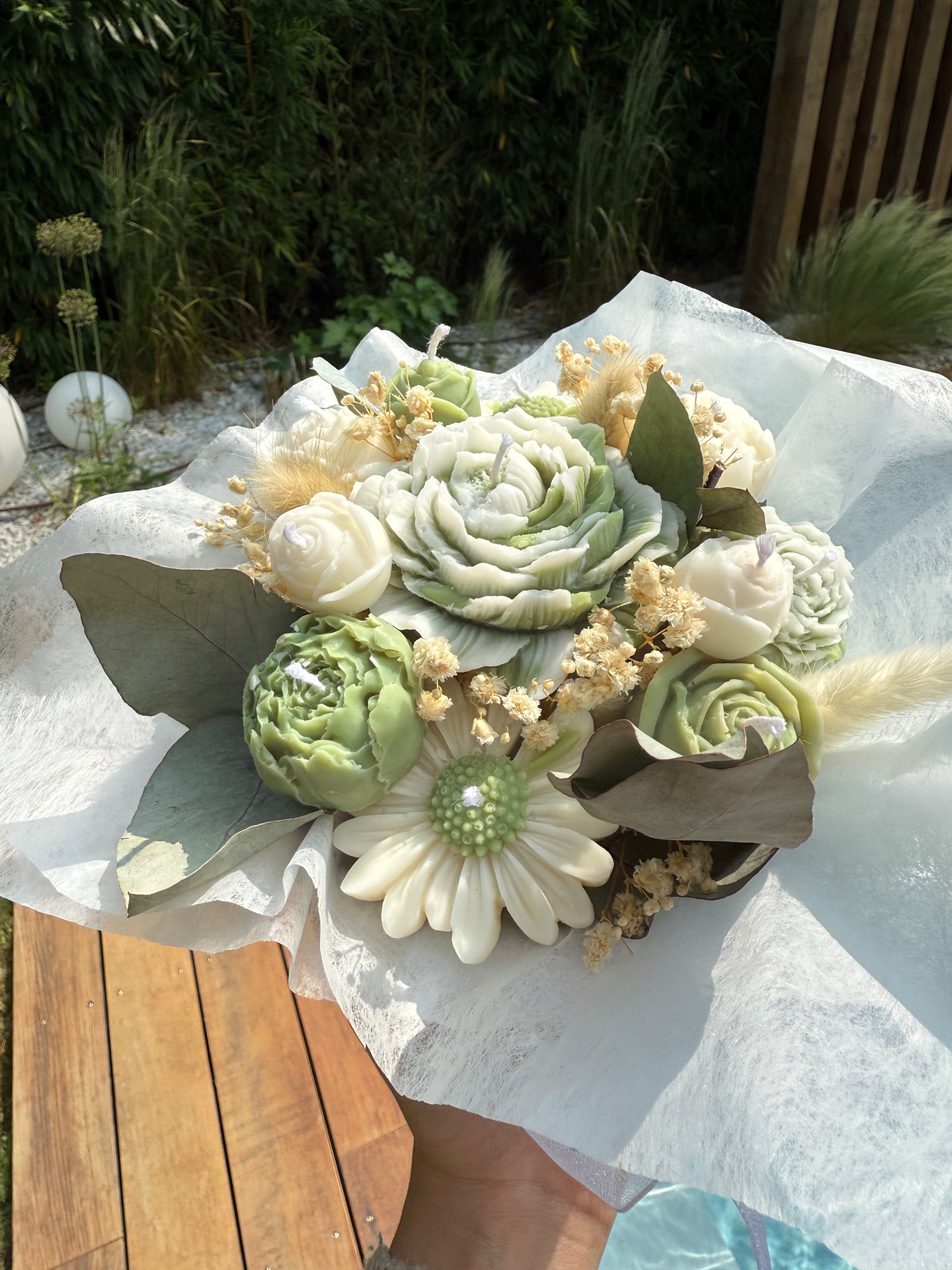 Nos bouquets de fleurs de bougies sont uniques et réalisés sur demande, entièrement confectionnés à la main avec de la cire végétale de haute qualité et délicatement parfumés avec des parfums de Grasse.